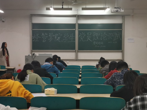 10月22日晚,经管学院全体学生党员分两批在云塘校区文科楼E区和金盆岭校区7号教学楼同时参加“不忘初心、牢记使命”主题教育理论考试。
