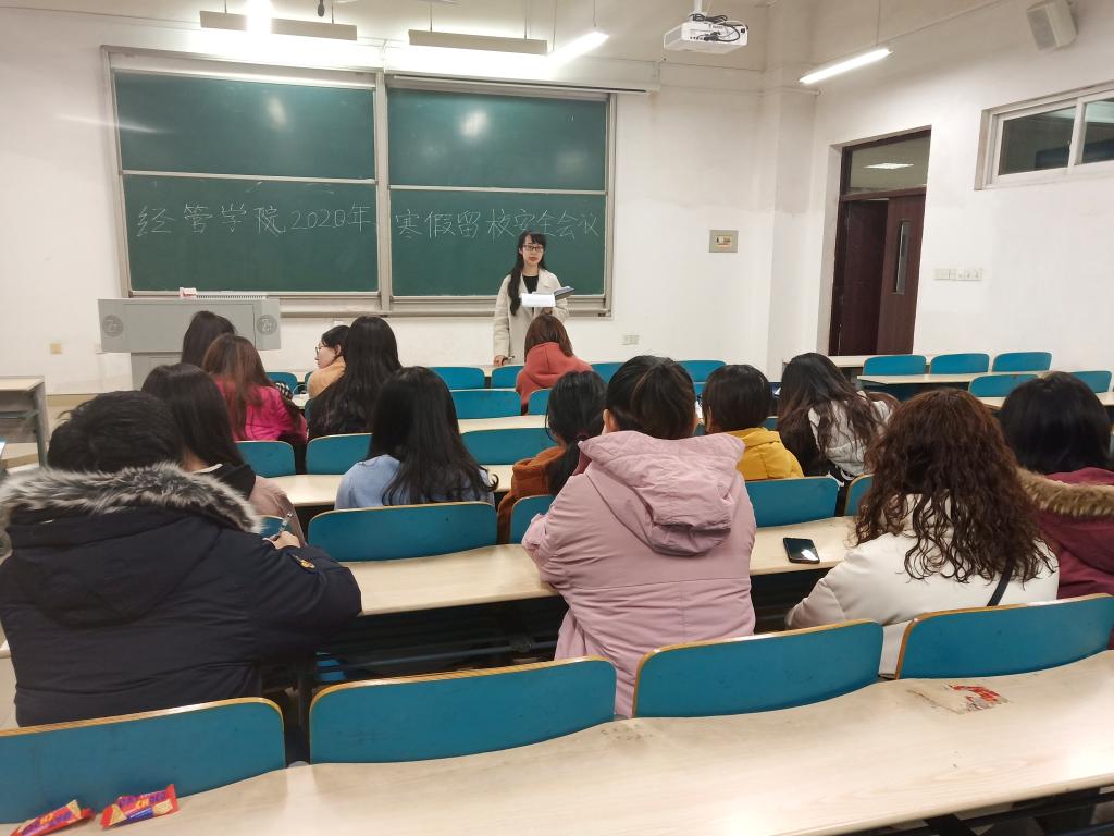 为加强寒假期间留校学生的管理,强调寒假留校注意事项,帮助留校同学更好适应假期留校生活,1月7日晚,经管学院于文科楼E102教室召开了2020年本科生寒假留校安全会议。本次会议由分管日常事务的辅导员叶鑫主持,学院申请留校的本科生参加了会议。
