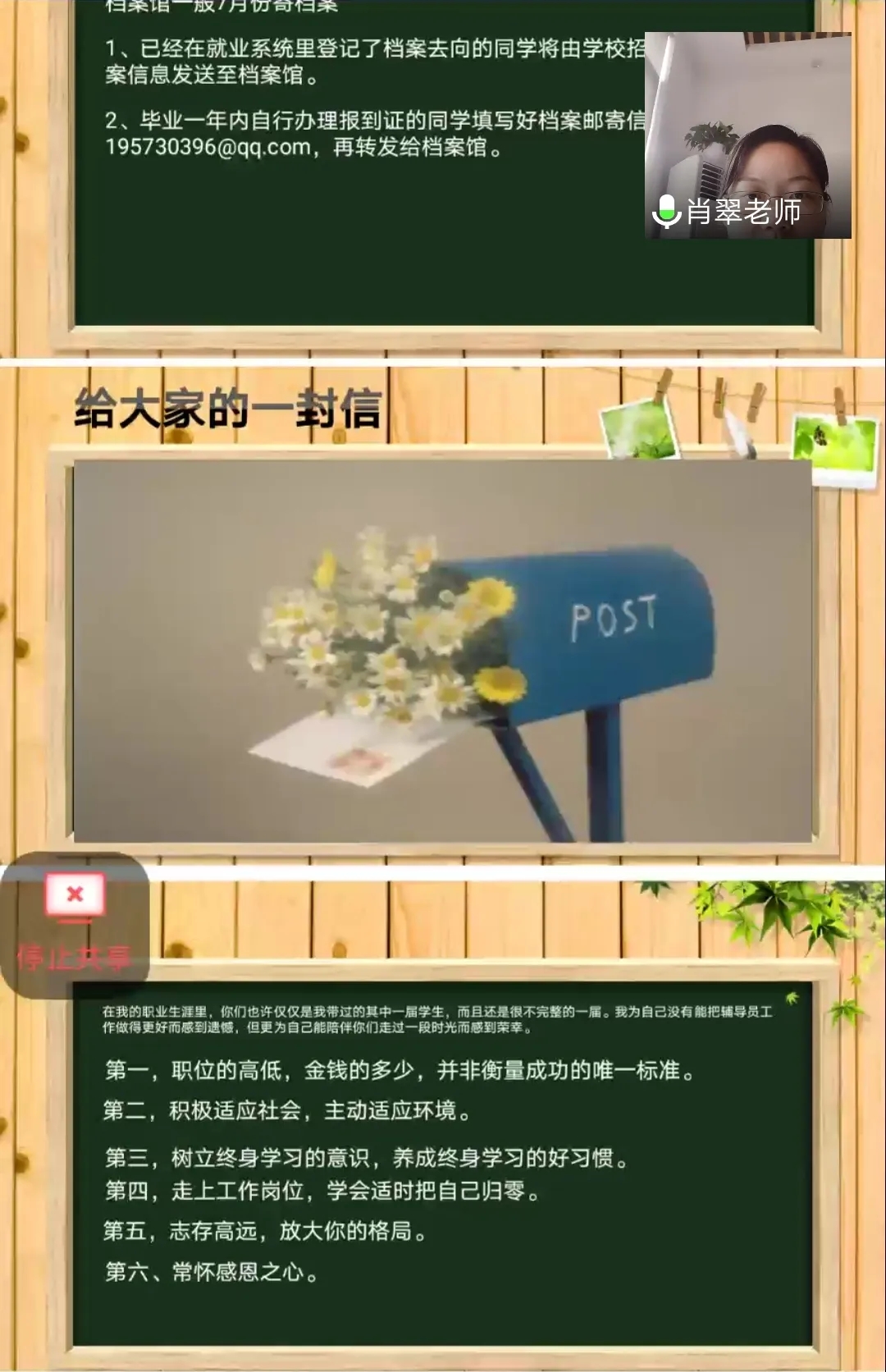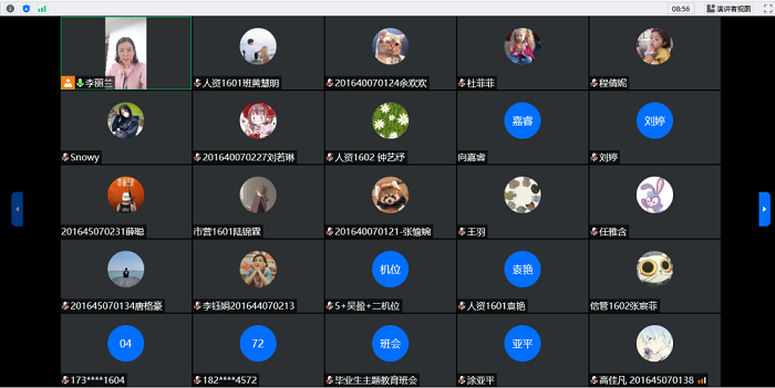本次会议由学院党委副书记唐青指导,学工办辅导员主持。首先,开展学生返校后安全教育,进一步强调返校学生坚持每天三次体温监测、注意宿舍内务卫生与安全用电等事宜。再次,结合学院目前的就业现状,学院号召毕业生要“先就业,再择业”,对未就业学生进行积极动员。同时针对未就业学生,学院从端正就业心态、关注就业信息、提高求职技能等方面进行教育与引导。随后,学院将毕业生报到证的办理、党团组织关系、学生档案的转出、毕业生登记表的填写、毕业照拍摄、暑期教学班报名、文明离校等各项事宜进行了详细讲解与说明。最后为答疑时间,同学们对报到证、户口与档案、毕业证领取、考公务员、考研二战等关切的问题和老师们进行了咨询。同时学院向学生提供了不同疑问的咨询与求助方式,为毕业生更好地提供文明离校服务。