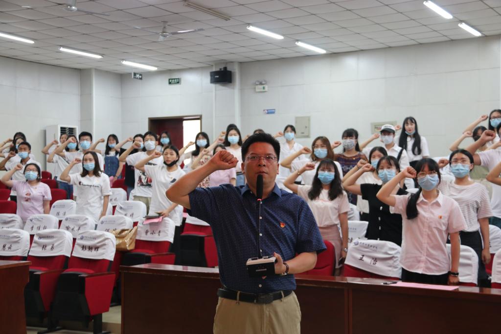 党日活动中,唐青宣读了《关于表彰2020年度优秀大学生党员的决定》 ,对学业成绩优秀、学生干部工作突出的毕业生党员进行表彰,授予葛楠等22位同志“经济与管理学院2020年度优秀大学生党员”称号。随后,全体与会党员面向党旗、举起右拳,在王书记的带领下庄严宣誓。全体毕业生党员共同签署了《毕业生党员自律承诺书》,明确党性不“毕业”,承诺始终以一名优秀党员的标准严格要求自己,在校做文明、安全离校的表率,入职后做长理文化和经管精神传承人,做新时代的奋斗者。