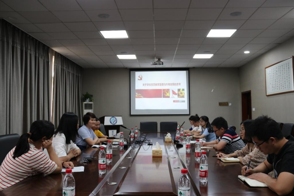 首先银波老师以“关于学生党员教育管理与作用发挥的思考”为主题展开党建经验分享,从“组织发展的培养关”、“学习教育的思想关”、“作用发挥的行动关”三个方面,分享了学生党建工作如何有效开展的经验,比如:学生党员发展、管理过程中,如何规范选拔,严格考核,如何让学生党员“双岗双责”作用得到发挥,展现党员模范带头作用。紧接着,她结合档案材料的规范化,明确“建档意识”与“身份意识”的关联。应大家要求,银波还分享了教师编制考试的经验,结合笔试技巧,系统地分享了理论学习的方法,团队备考的力量等。