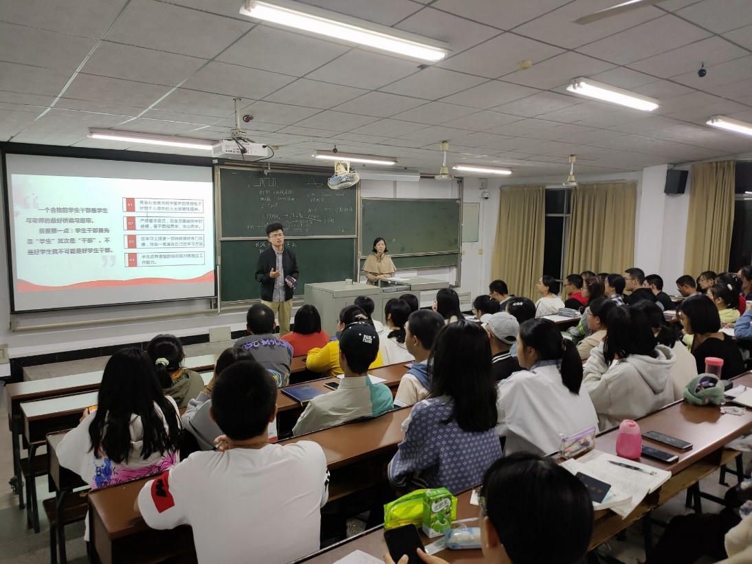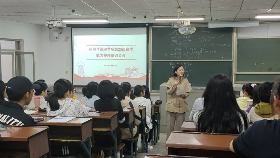 为提升2020级新生学生干部的工作能力,培育优良的学风与班风,经管学院于10月14日晚在12教418室开展了2020级学生干部培训。培训由党委副书记唐青总指导,年级辅导员李丽兰、戴逢哲召开,各班班委与新一届年级分会干部参会。