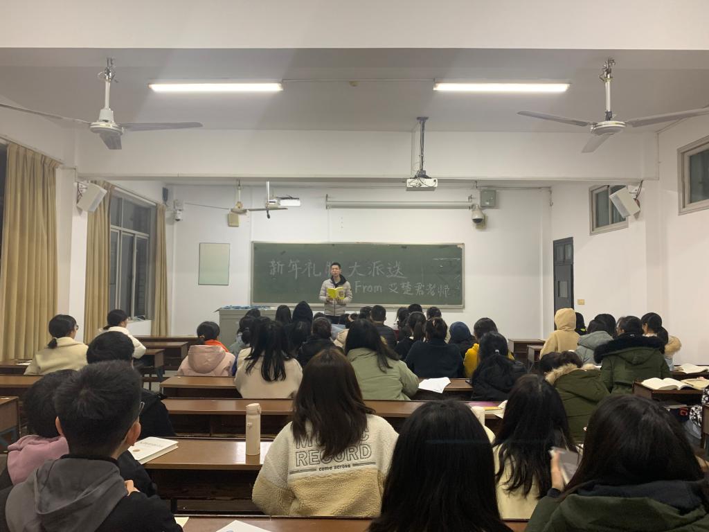 为引导学生们爱读书,读好书,形成良好的班级学风建设,三位老师为班级每位同学准备了一份特别的新年礼物——“新年的第一本书”。其中包含了经济、管理、哲学、历史、散文等不同类别。