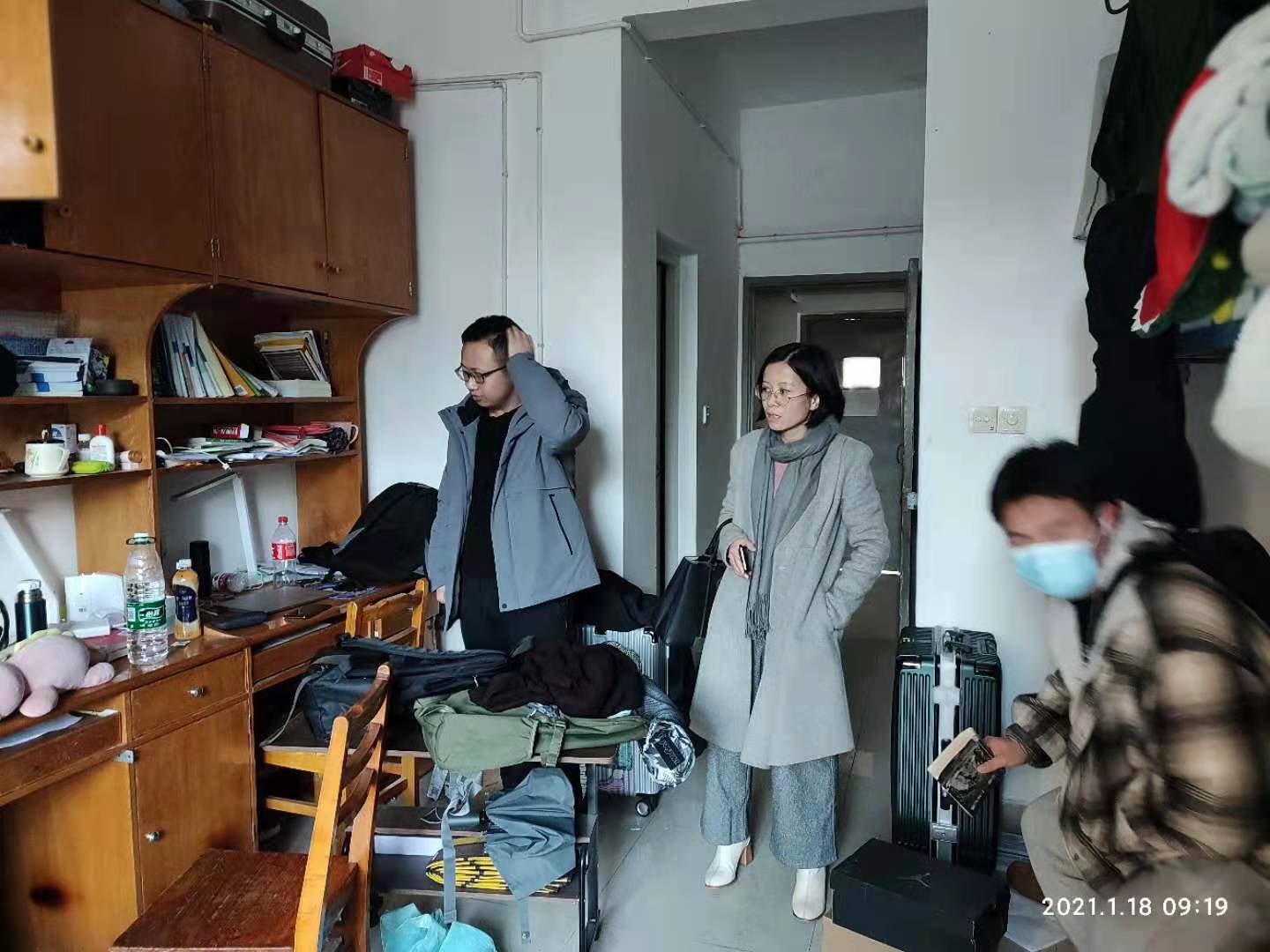 1月18日上午8:30,经管学院全体辅导员在院党委副书记唐青的带领下集中深入学生宿舍,了解学生寒假离校情况,进一步加强离校安全教育。