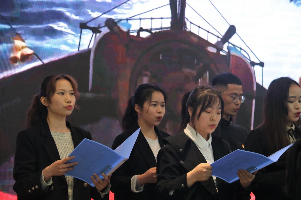 活动第二项为红色经典诗歌朗诵,入党积极分子和预备党员分组朗诵了《可爱的中国》《红船,从南湖起航》《党旗颂》《长征》等红色经典诗歌。“祖国啊,祖国,你永远充满希望”“祝福党,祝福祖国!”各位学员用洪亮的声音、饱满的情感朗诵着诗歌,表达自己对党和祖国的热爱与祝福,把“恰同学少年,风华正茂”的豪迈气势充分表现了出来。