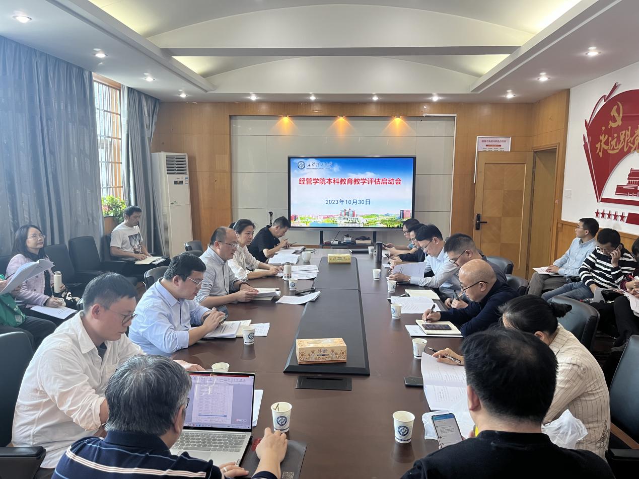 10月30日上午,雷竞技官网本科教育教学审核评估线上评估正式启动。为有效推动学院审核评估工作和教育教学的顺利开展,实现"以评促建、以评促改、以评促管、以评促强"的评估目标,10月30日下午,经管学院在金盆岭校区经管大楼307会议室召开本科教育教学审核评估启动会。会议由副院长(主持工作)彭新宇主持,学院党政领导班子成员、教工党支部书记、系(室、中心)主任、评估办成员等参加会议。