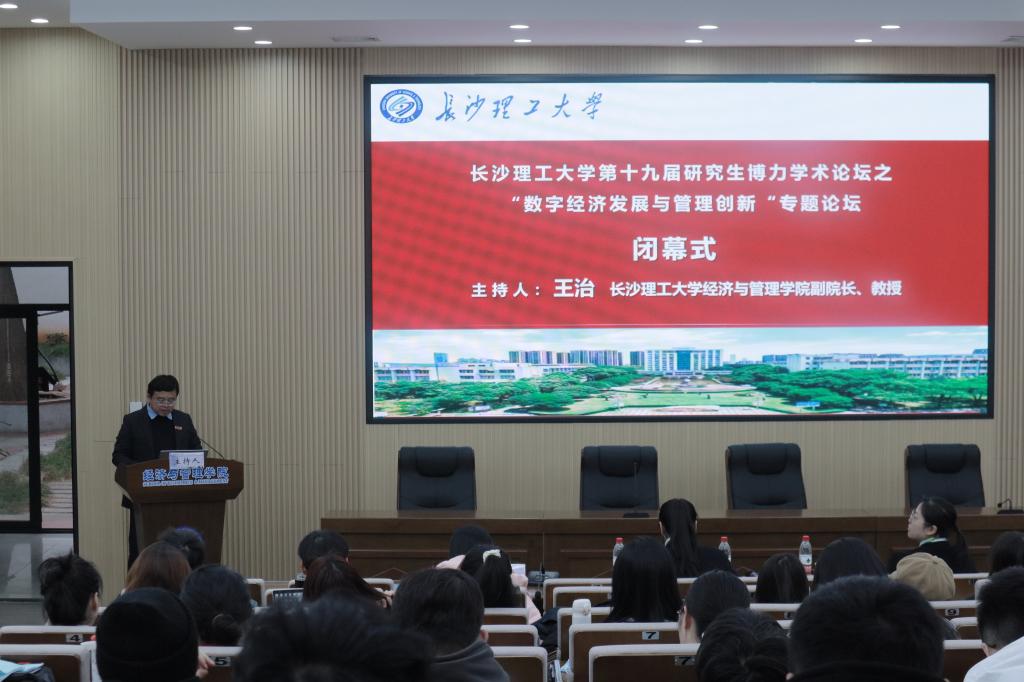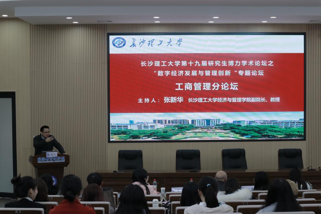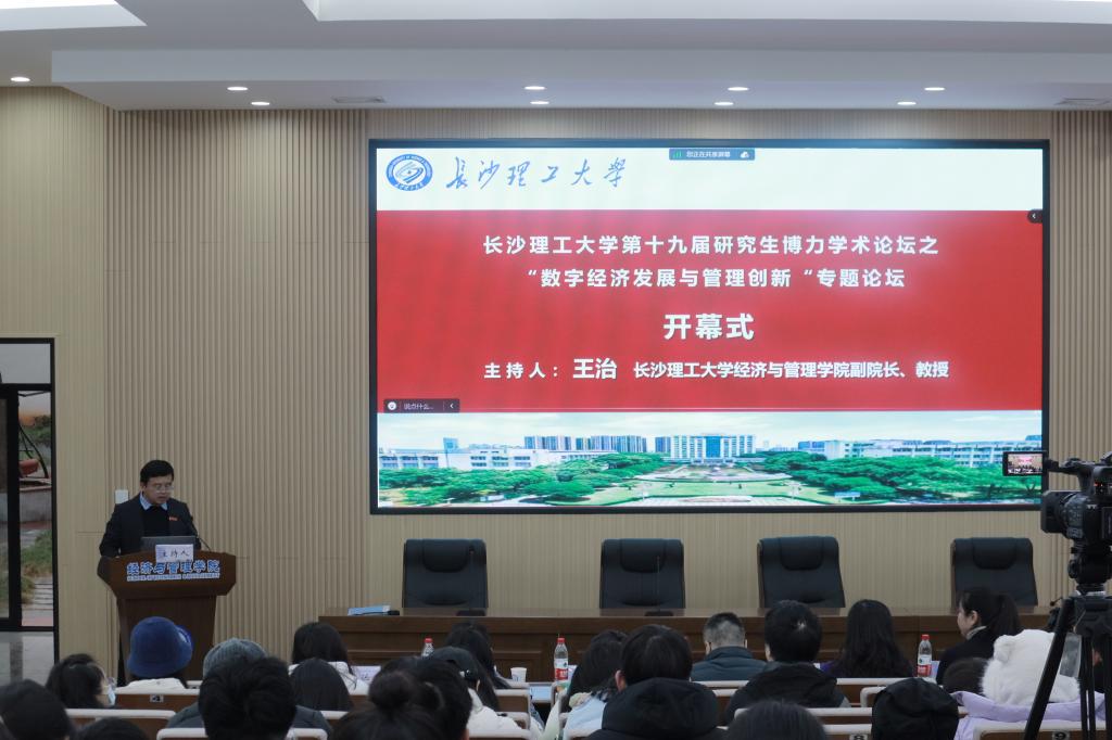 12月15日,长沙理工大学第十九届研究生博力学术论坛“数字经济发展与管理创新”专题论坛在长沙理工大学金盆岭校区成功举办。此次论坛由长沙理工大学研究生院主办,经济与管理学院承办,采用线上线下相结合的方式。论坛邀请了对外经济贸易大学张新民教授、湖南大学工商管理学院张跃军教授、湘潭大学商学院韩雷教授和中南大学商学院汪阳洁教授作主旨报告,长沙理工大学研究生院副院长、研工部部长闾兰老师、经济与管理学院党委副书记唐青老师、经济与管理学院副院长王治教授、副院长张新华教授、副院长刘坚教授、会计系系主任张鼎祖教授、唐文进教授等领导和老师参加了此次论坛。