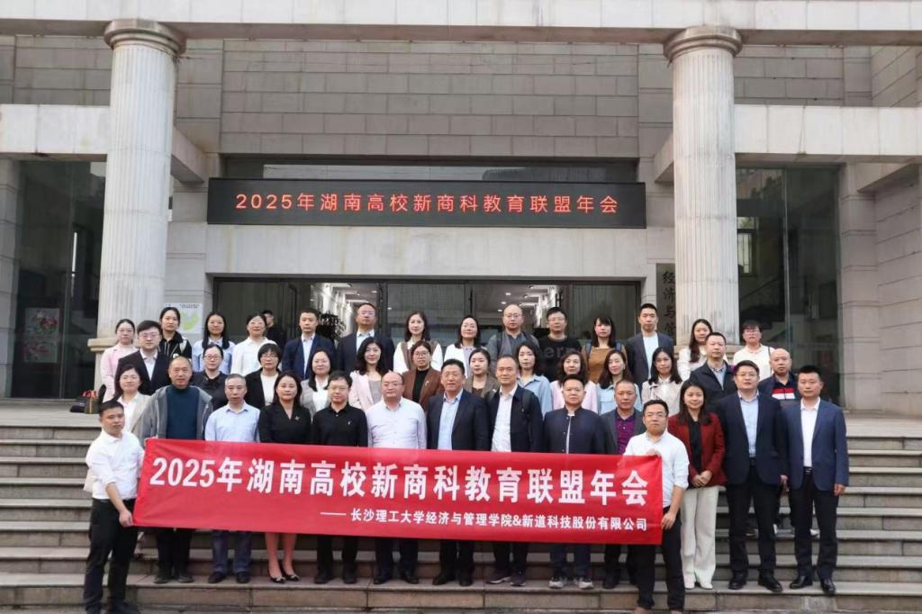 3月25日下午,由新道科技股份有限公司和我院联合主办的“2025年湖南高校新商科教育联盟年会”在金盆岭校区经管大楼F202会议室举办。来自湖南大学、湖南农业大学、中南林业科技大学、湖南女子学院等省内高校和企业的70余名代表围绕“产教融合,AI赋能,共育数智商科人才”主题展开深入探讨。年会由彭新宇院长主持。