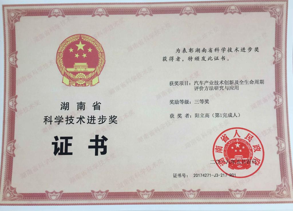 5月4日,2017年度湖南省科技创新奖励大会在长沙召开,集中表彰为推进全省创新发展作出突出贡献的科技工作者和创新实践者。省委书记、省人大常委会主任杜家毫出席大会并为获奖代表颁奖,省委副书记、省长许达哲讲话。我院阳立高副教授主持的“汽车产业技术创新及全生命周期评价方法研究与应用”荣获湖南省科学技术进步奖三等奖。