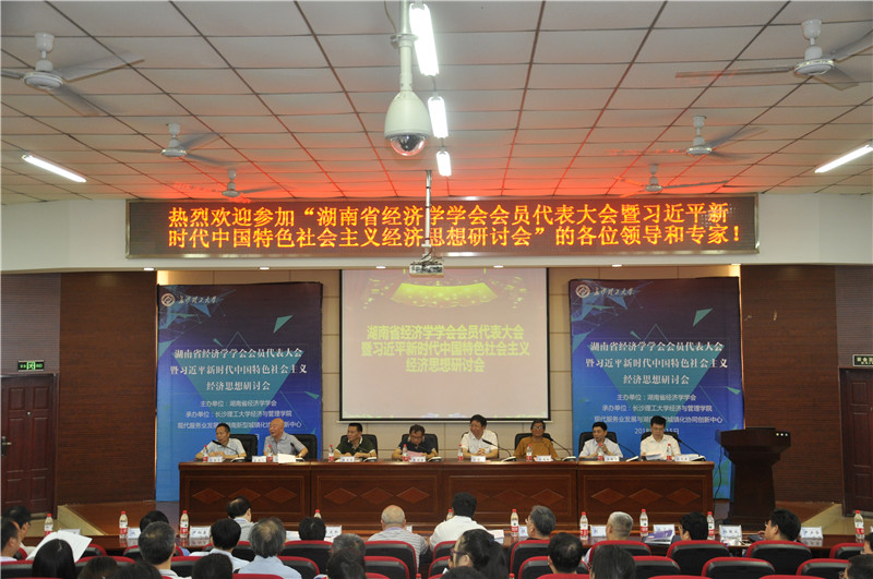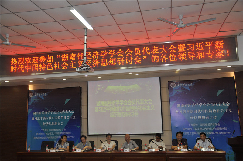 7月15日上午,由湖南省经济学学会主办,长沙理工大学经济与管理学院、现代服务业发展与湖南新型城镇化2011协同创新中心联合承办的“湖南省经济学学会会员代表大会暨习近平新时代中国特色社会主义经济思想研讨会”在长沙理工大学文科楼A200报告厅召开。来自省民政厅、省社科联、省社科院以及多所高校的领导、专家集聚一堂,雷竞技官网党委书记付宏渊、副校长谈传生参加了会议。会议分为两个阶段,第一个阶段是湖南省经济学会会员代表大会,主题是学会换届选举,由学会副理事长柳思维教授主持;第二个阶段是习近平新时代中国特色社会主义经济思想研讨会,由学会新任理事长王耀中教授主持。