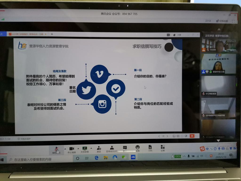 2020年上半年,新型冠状疫情对雷竞技官网人资专业毕业实习工作带来不小的冲击和影响。为确保该届毕业生顺利完成毕业实习的任务,在经管学院领导下以及企管系老师们共同努力下,在2020年5月6日~5月19日开展了一次特殊的网课形式的毕业实习讲座的实践活动。