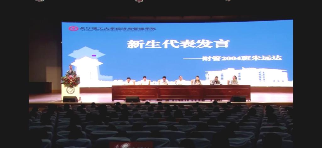 教师代表谢志明教授在发言中希望全体新生能够顺新时代之势,学新时代之知,时刻关注时代变迁,不断增强学习交流,将自身发展融入新时代发展进步之中,实现新时代之魂。会计1802班樊洁同学从自我认知、理想信念、自我管理三个方面,并结合自己在经管学院的经历和收获,勉励新同学放下担忧与顾虑,坚定理想,大胆前行,去体验属于自己的精彩人生。研究生20级工商管理班盛熙然同学在发言中和大家一起分享对“不忘初心,方得始终”的理解,她觉得要不忘披荆斩棘,珍惜前路漫漫;不忘谆谆教诲,勇担时代使命;不忘学生本分,“博学、力行、守正、拓新”。本科生新生代表财管2004班朱远达同学倡议同学们心存感恩、怀揣梦想、逐梦前行,既仰望星空、心怀梦想,又脚踏实地、逐梦前行。只争朝夕、不负韶华,在火热的青春中放飞人生梦想,在拼搏的青春中成就事业华章。