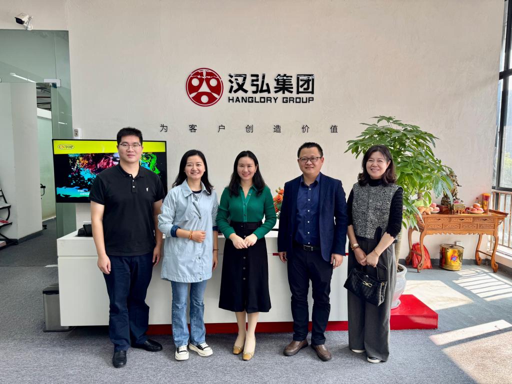 深圳汉弘数字印刷集团股份有限公司是一家以数字喷墨打印技术为核心,集研发、生产、销售、售后服务于一体的工业数字印刷综合解决方案提供商,专业为客户提供数字喷墨印刷设备、软件、墨水、配件及专业服务,产品应用涵盖广告、家装、成衣、纺织、包装、书刊、标签、印刷电路板以及3C电子等行业目前拥有7家国家级高新技术企业。学院一行在集团临时办公场地了解集团的发展情况,数字喷墨打印行业发展,向公司管理人员介绍学院发展、专业设置、学生培养等情况,双方就实习生、应届毕业时招聘等达成合作意向。