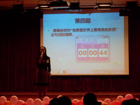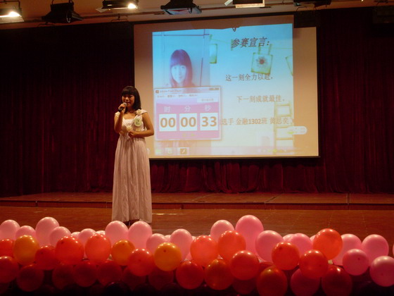 经过前期激烈的初赛,共有八名优秀选手进入决赛。首先,是比赛第一轮一分钟自我介绍环节,八位选手分别进行了简短而有新意的自我介绍,这给在场的所有人留下了深刻的印象。接下来,是以“喜迎十载华诞再创长理辉煌”为主题的三分钟演讲环节,选手们依次做了精彩的主题演讲,各自抒发了对长沙理工大学的敬爱与敬畏。有的选手都激情昂扬,饱含深情,感染了在场的观众;有的选手则因紧张而出现忘词现象,但在观众的鼓励之下表现仍然不错。为了调节气氛,主持人进行了有趣的智力问答游戏,在场观众都踊跃参加,极大地缓解了比赛的紧张气氛。最后,经过两轮角逐后留下来的六名选手进入了即兴演讲环节,选手们从六道题目中随机抽选一道题,并在三十秒的准备时间后开始两分三十秒的演讲,虽然其中不乏“图书馆里的叹息”之类令人琢磨不透的题目,但这这并没有难倒思维敏捷的选手们,她们灵活的回答让人连连称赞。最终陈铖同学以89.66位居总分第一获得本场比赛的胜利,肖嫣捷、郭会云同学紧随其后。