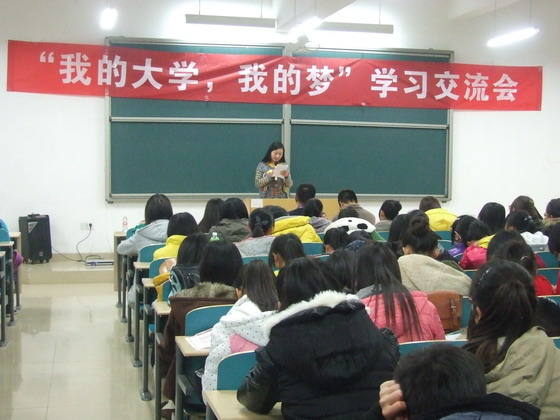 2013124日晚上7:30,经管学院“我的大学,我的梦”学习交流大会在文科楼D105教室顺利举行。我院青志协副会长王珺玥、院学生会文艺部部长刘睿以及第一届校主持人大赛冠军顾宇翔为大家带来了精彩的讲话,经管院2013级新生参与了此次大会。