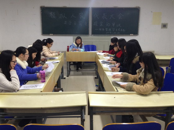 20131212下午5:307:30,经管学院财务管理学生党支部在综合教学楼C601进行了一次别开生面的党员理论学习---模拟人民代表大会之关于自贸区提案的审议。本次会议作为本支部的一次特色理论学习,通过新形式、新视角,紧跟国家经济步伐,展现了我们支部成员的学习热情和党员先进性。