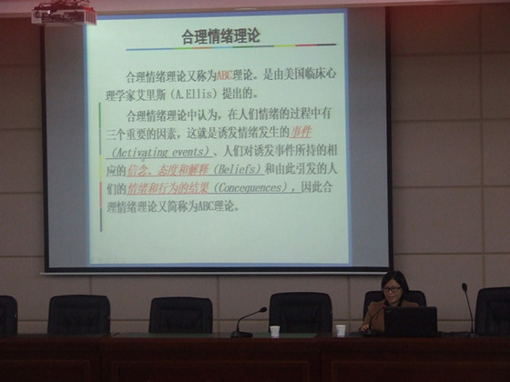 我院心理辅导员李丽兰老师作为第一讲的主讲人,围绕“我的情绪,我做主”主题展开了一系列的讲话。她首先向同学们抛出“什么是情绪、怎么调整自己的情绪以及情绪管理的目的是什么”几个问题,引起同学们的深思。通过点出大学生易出现的几种消极情绪,包括愤怒、嫉妒、焦虑和抑郁等,并举出一些和大学生学习生活息息相关的例子来引出问题答案。接下来,李老师又提出几种情绪的非理性观念,并通过提问引导同学们正确对待自己情绪的变化,把不合理情绪变为合理情绪。最后是互动环节,李老师邀请几位同学跟大家分享自己与情绪变化相关的故事,进行现场辅导,以此来深化主题。