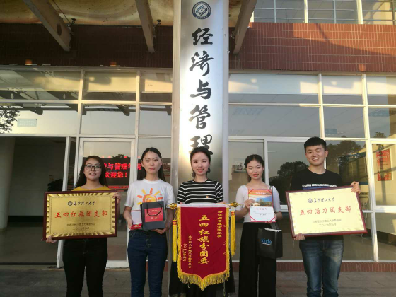 5月9日下午,长沙理工大学纪念共产主义青年团成立95周年暨五四表彰大会在云塘校区大会堂隆重召开,共青团经济与管理学院委员会在2016-2017学年中收获佳绩,获评“五四红旗分团委”,2014级卓越会计团支部获评“五四活力团支部”,会计1507团支部获评“五四红旗团支部”,海婉获“五四青年奖章”,曹梦瑶、要攀攀获评“十佳团干”。