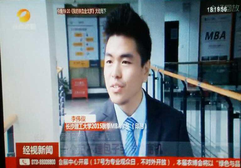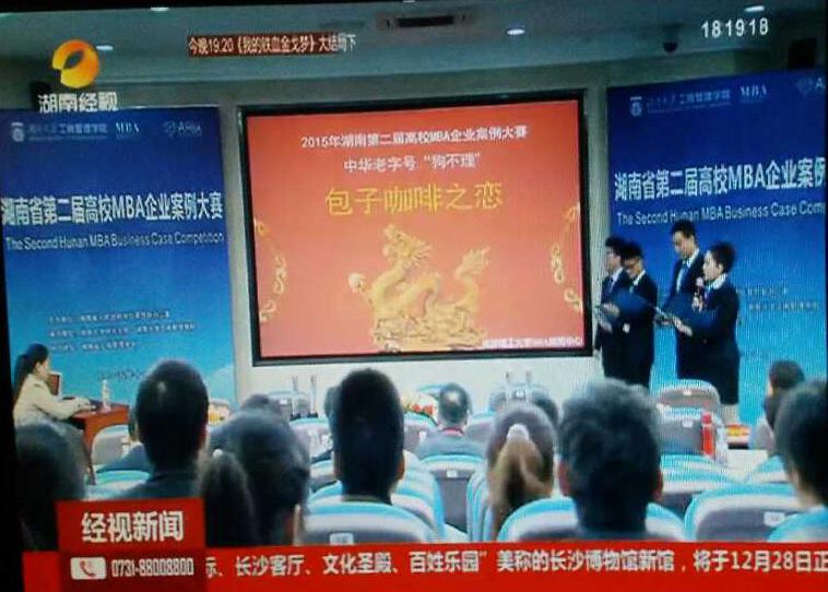“谁说喝咖啡一定要配提拉米苏呢?谁说吃炸鸡一定要配啤酒呢?如果我们专注中西方文化共融的产品形象和产品设计,就能在迪拜推广‘咖啡配包子’的饮食习惯,让它成为一种时尚,在年轻消费群体中风靡!”。湘虎队选手们用包子配咖啡,打开国际市场的新颖角度,能言善辩的机智回答让现场气氛达到高潮,不仅牢牢吸引了评委们和观众们的眼球,同时也获得了湖南经视的独家青睐,在11月16日晚上六点播出的经视新闻中http://www.hunantv.com/v/5/623/f/1846429.html,朱鸽同学的能言善道、妙语连珠,印尼学生李伟俊提出的跟随一带一路的战略,结合国外年轻人追捧的社交软件facebook,instagram去掉包子的土气,使人脑洞大开,给大家留下了深刻的印象。