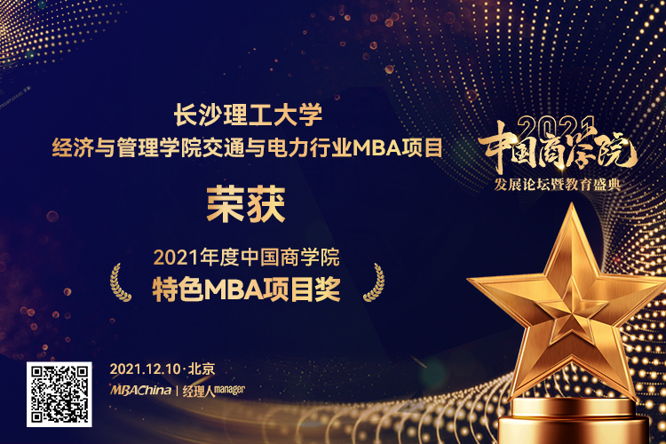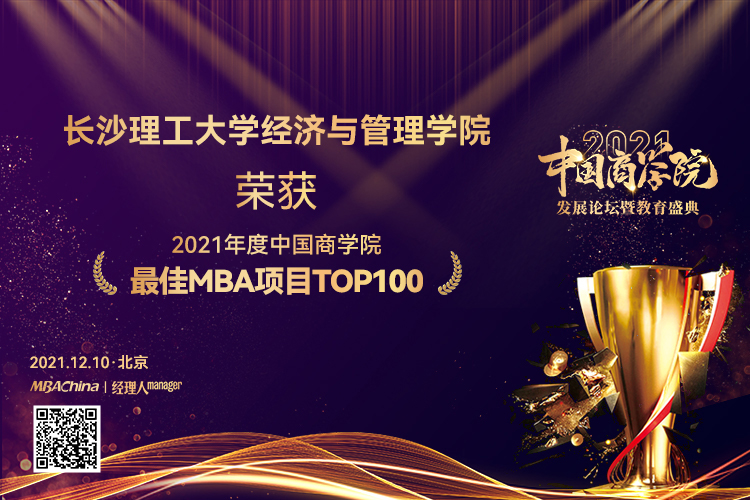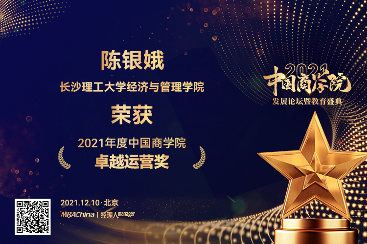 本次盛典以市场数据为基础,考评了全国200多家MBA院校,完成了数据采集、院校申报、问卷调查等多项工作,综合师资力量、课程项目、学员评价、品牌影响力等十个评选维度。为激励和表彰优秀商科项目、团队和个人,会上颁发了多个奖项。最终,长沙理工大学经济与管理学院MBA项目凭借强劲的实力和鲜明的特色荣获““2021年度中国商学院最佳MBA项目TOP100”和“2021年度中国商学院特色MBA项目”奖,经济与管理学院陈银娥教授荣获“2021年度中国商学院卓越运营奖”。