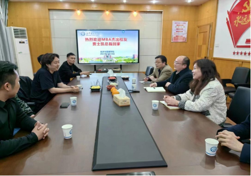 3月18日,长沙理工大学MBA杰出校友、北京悦凯影视有限公司总裁贾士凯莅临金盆岭校区,经管学院党委书记丁丹、副院长(主持工作)彭新宇、校友中心办公室主任王锦文以及往届MBA校友10余人在金盆岭校区办公大楼307共叙情谊、共谈发展。