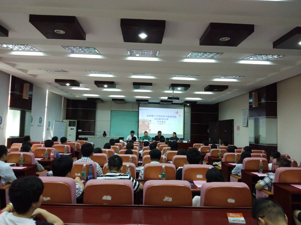 9月9日上午10点,长沙理工大学2018级MBA新生开学典礼在金盆岭校区7教212室隆重举行。长沙理工大学副校长谈传生教授,研究生院龚文斌副院长、经济与管理学院院长陈银娥教授、党委书记王宏教授、涂道勇副书记、彭新宇副院长、王治副院长、MBA校友代表、芒果超媒(上市公司)副总裁兼CFO\芒果TV副总裁梁德平先生、芒果TV内控部经理徐岗先生出席典礼仪式。典礼由王宏书记主持。