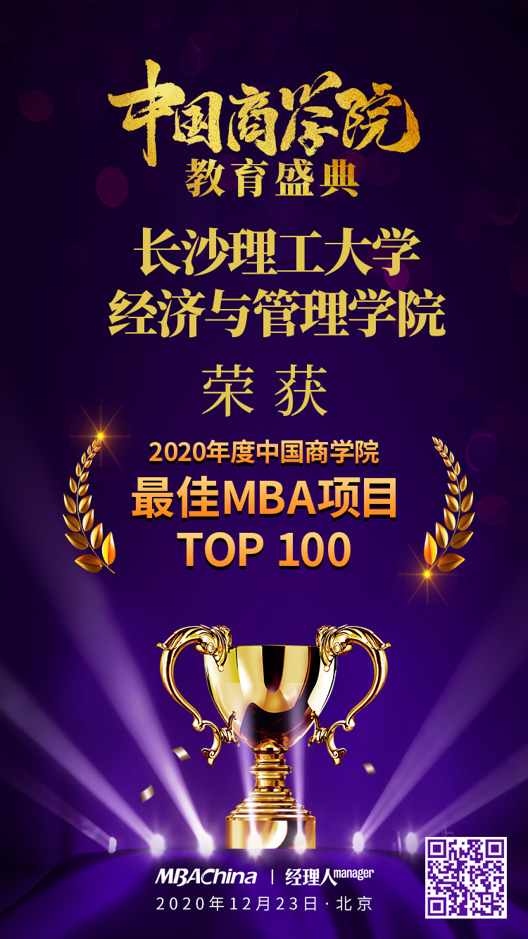 2020年12月23日,MBAChina与《经理人》杂志联合主办的2020年中国商学院教育盛典在北京顺利召开!教育部高教司原司长、中国高教学会副会长张大良先生应邀出席盛典并致辞,湖南工商大学校长陈晓红院士发表了主旨演讲。雷竞技官网经济与管理学院专业学位研究生教育中心吴净老师作为代表参加了本次盛典。雷竞技官网经济与管理学院荣获“2020年度中国商学院特色MBA项目”和“2020年度中国商学院最佳MBA项目TOP100”两项荣誉。