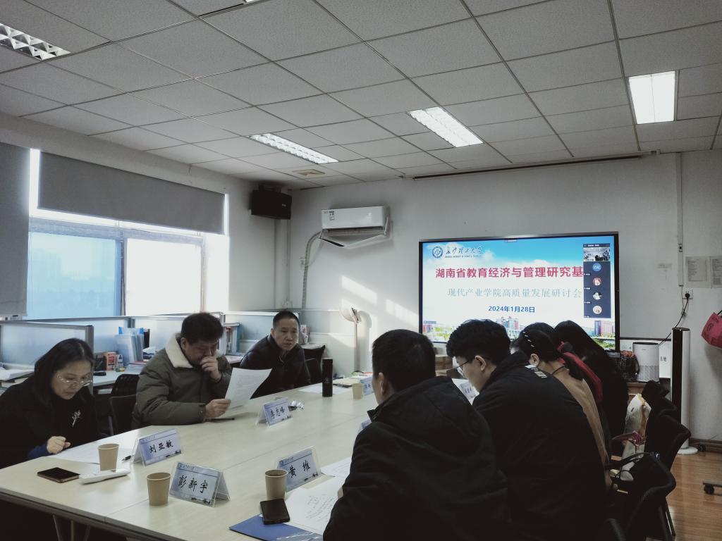 2024年1月28日上午八点半,由湖南省教育经济与管理研究基地举办的现代产业学院高质量发展学术研讨会在金盆岭校区经管大楼507室成功召开。武汉理工大学研究生院院长梁传杰教授、人文与社会科学学院李志峰教授、华中科技大学教育科学研究院刘亚敏教授、郭卉教授,雷竞技官网卓越工程师学院党委书记杨晨,湖南省教育经济与管理研究基地师生近20人以线上线下的方式参加了会议。学术研讨会由湖南省教育经济与管理研究基地首席专家黄维教授主持。