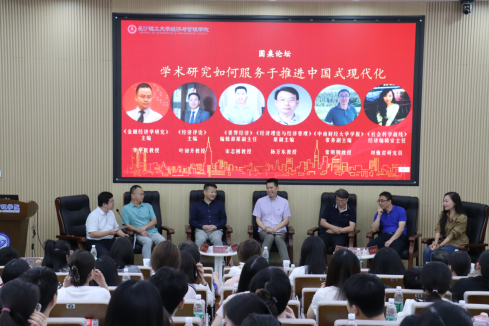 圆桌论坛主题为“学术研究如何服务于推进中国式现代化”,由长沙理工大学经济与管理学院副院长王治教授主持。《世界经济》编辑部原副主任宋志刚教授、《经济理论与经济管理》原副主编杨万东教授、《经济评论》主编叶初升教授、《中南财经大学学报》常务副主编常明明教授、《金融经济学研究》主编李华民教授、《社会科学战线》经济编辑室主任刘雅君研究员等6位学者展开了热烈讨论。学者们解读了中国式现代化的内涵,提出要大力推动期刊高质量发展,投稿稿件的高质量取决于是否沉下心来做学问、研究真问题。