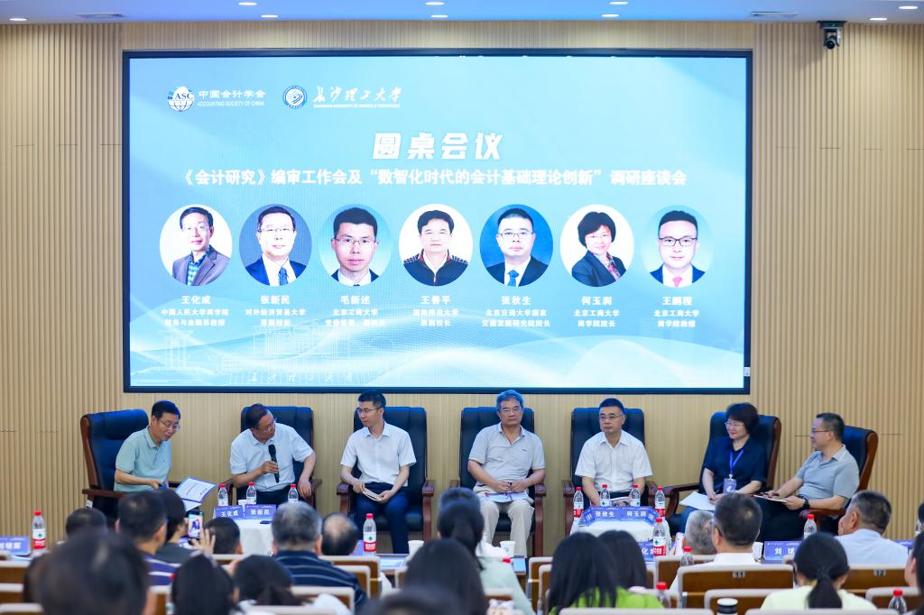 2025年6月7日,2025年《会计研究》编审工作会及“数智化时代的会计基础理论创新”调研座谈会在长沙理工大学成功召开。来自财政部、中国会计学会领导,中国人民大学、厦门国家会计学院、西南财经大学、中国海洋大学、复旦大学、重庆大学、中央财经大学、东北财经大学、南京大学、北京交通大学、西安交通大学、对外经济贸易大学、中山大学、暨南大学、北京工商大学、海南大学、湖南师范大学、长沙理工大学等高校50余名会计学界知名专家学者齐聚一堂、共同研讨数智化时代会计基础理论创新问题。本次会议由中国会计学会主办,长沙理工大学承办。会议分为开幕式、《会计研究》编审工作会、调研座谈会和学术论文交流研讨四个环节。长沙理工大学经济与管理学院150余名师生参加了本次会议。