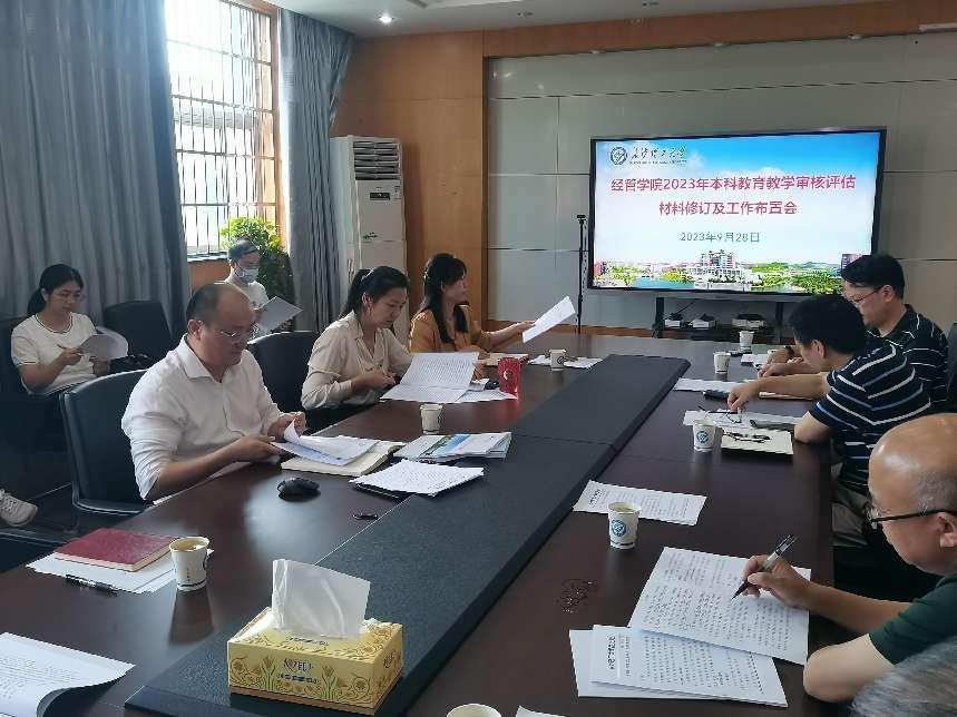 9月28午,经管学院召开2023年本科教育教学审核评估材料修订及工作布置会”,会议由副院长(主持工作)彭新宇主持,全体院领导、各系各教研室正副主任、支部书记和各办主任参加