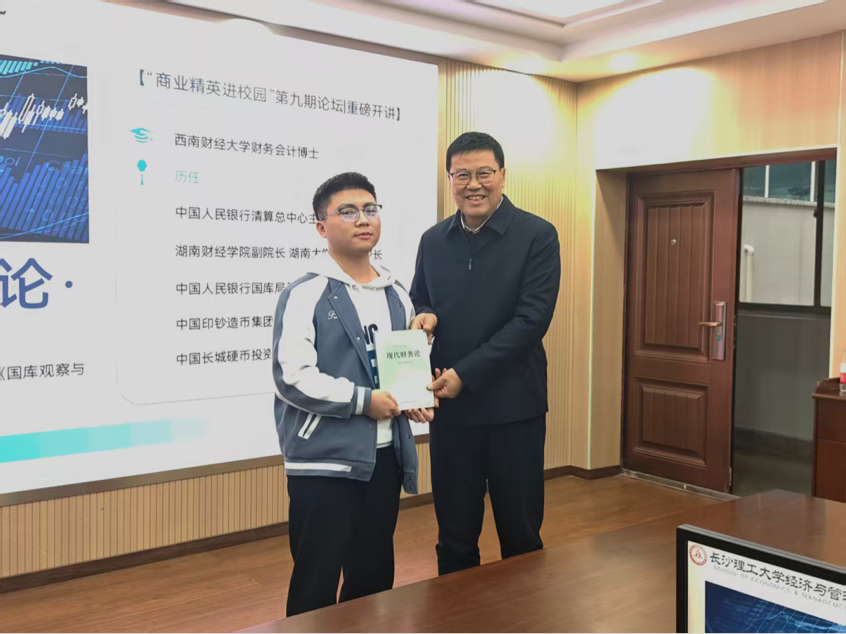 11月17日下午,学院在经管大楼F202报告厅举办了“商界精英进校园”论坛,邀请了雷竞技官网湖湘学者讲座教授、中国印钞造币集团有限公司党组书记、董事长刘贵生担任第9期主讲嘉宾,主题为“现代财务论”,讲座由财务会计系主任朱锐主持,学院师生代表60余人参加了讲座。