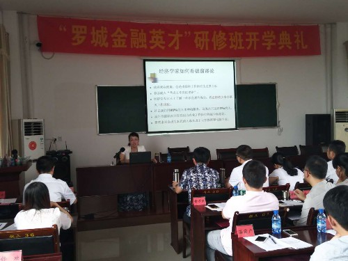 “罗城金融英才”研修班是经管学院金融系与汨罗市委进行深度合作的一次实践。应汨罗市委邀请,金融系结合汨罗市基层领导干部的实际情况和相关部门工作内容的实际需要,同时充分考虑讲授内容的专业性、针对性和实用性,为研修班学员精心设计了25门金融专业课程,通过每周一次的开班讲学,提高汨罗市领导干部的金融专业理论和实践水平,加快汨罗市金融改革创新步伐、增强金融服务实体经济的能力。本次研修班开班时间为期一年,学员每周六上课,一年后,研修班将为通过论文考核的学员颁发结业证书。汨罗市委高度重视 “罗城金融英才”研修班的教育培训工作,已将参加培训的领导干部调训情况列入年度考核。