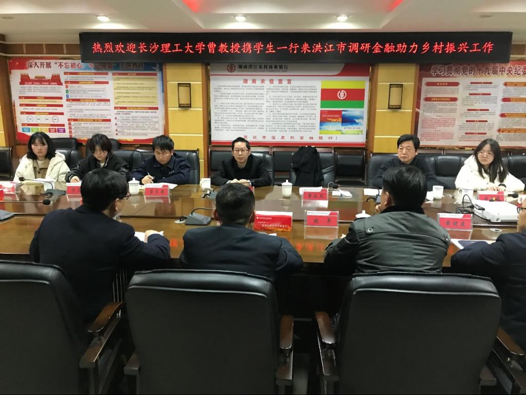 2月18日,为了解乡村振兴中政策性金融支持问题,由长沙理工大学经管学院金融学专业2002班郑博文、李湘茹、王雨婷、谭思璇四名同学组成的寒假调研团队,在金融系曹冰玉教授带领和指导下,于元宵佳节当天前往怀化芷江、洪江、通道三县的多家银行开展了为期三天的调研活动。