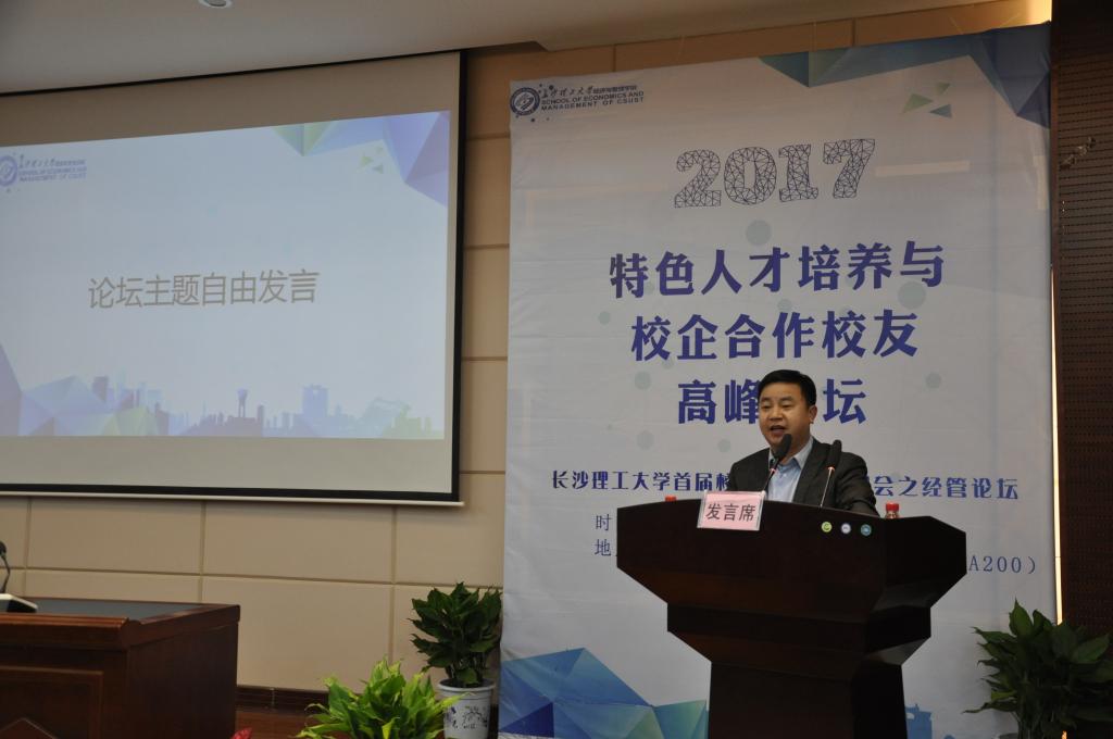 院长陈银娥向校友们介绍了学院在学科建设、科学研究、人才培养、创新创业等方面的情况,展示了学院优秀的创新创业团队和校企合作情况。教师代表谢朝华博士在发言中表示,大学之大源于校友之大,“双一流”的长沙理工大学离不开一流的校友,作为长理人要恪守长理精神,紧跟时代步伐,创新引领新经济。校友代表北京市大兴区发改局副局长孙锐东代表广大校友表达了感恩母校感恩老师的感激之情,他号召校友们积极关心母校和学院的建设和发展,为母校和学院的建设和发展建言献策贡献力量。校友代表海南福山福湖置业有限公司董事长李道洪发起了关于成立经管人才培养教育基金的倡议。