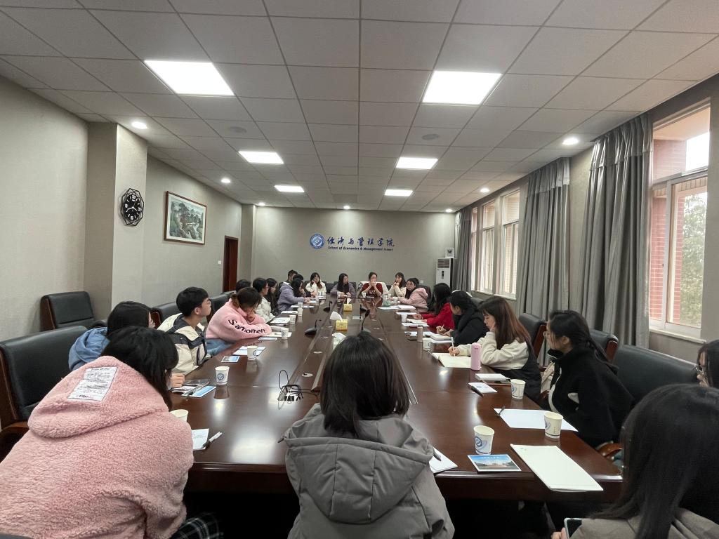 2022年1月5日下午三点,经管学院于文科楼D202会议室召开学生座谈会,此次会议是学院党委召开民主生活会前广泛征集群众意见,听取学生对学院发展建设的意见与建议的重要环节。学院党委书记丁丹、副书记唐青、学工办主任周路路与20余名学生骨干、党员等学生代表参会。会议由唐青主持。