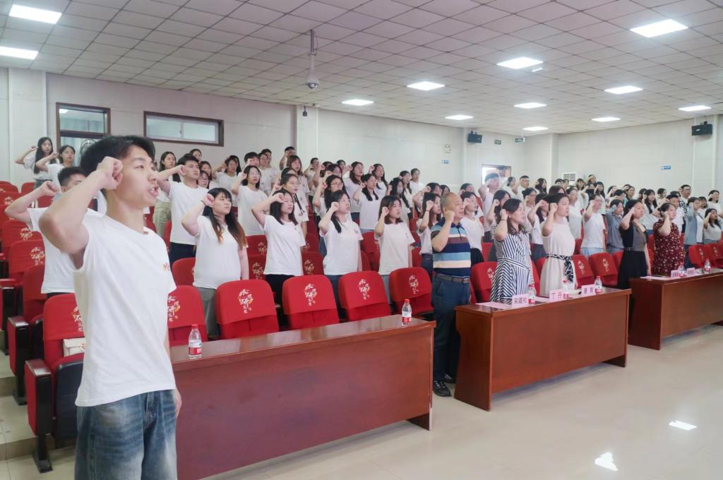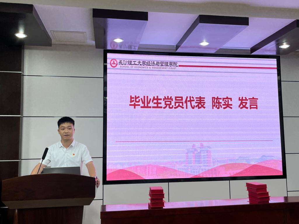 陈实和凌生华作为毕业生党员代表发言。凌生华回顾了大学四年向党组织靠拢的过程和自己的收获,感恩党组织的培养,让自己更加成熟坚定。陈实号召毕业生党员们要以党的二十大精神为指引,坚定入党初心,始终保持先进性和纯洁性,用自己的实际行动,为党的事业贡献自己的力量。随后,全体毕业生党员面向党旗重温了入党誓词。