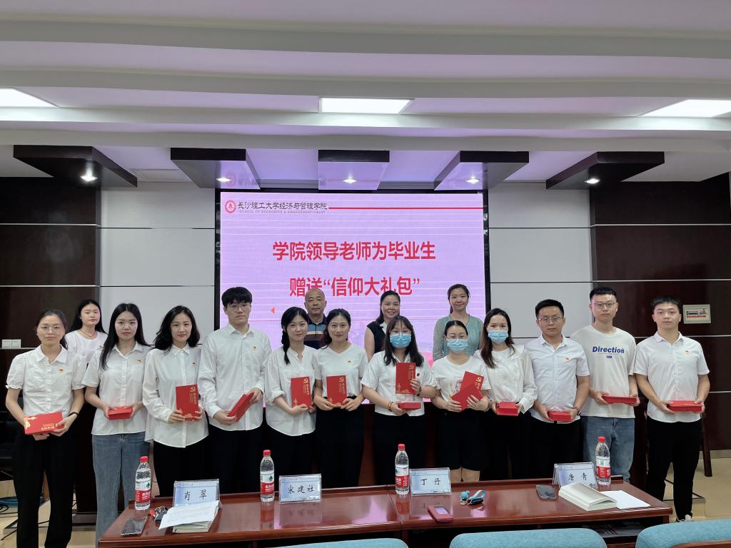 本次主题党日活动中,学院党委为每一位毕业生党员赠送了“信仰大礼包”——一本《中国共产党章程》、一张政治纪念生日卡、一枚刻有院徽的书签和一支刻有党员姓名的签字笔。希望毕业生党员走出校园后能继续发挥模范带头作用,在新的岗位上砥砺奋斗,勇担新时代青年的责任与使命。