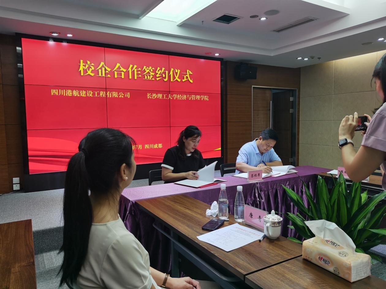 随后,在双方领导的见证下,经管学院与四川港航建设工程有限公司正式举行校企合作协议签约仪式,并进行基地授牌。
