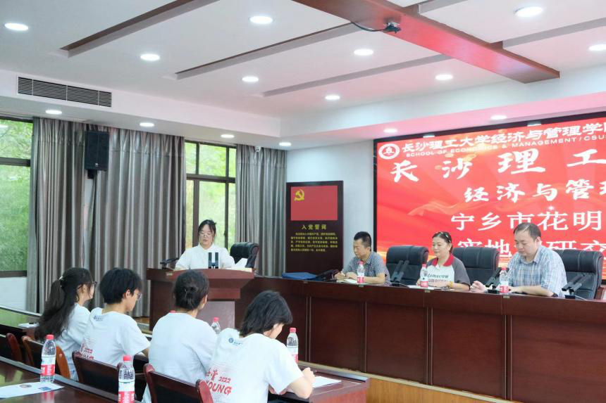 8月14日上午,为进一步加强学院学科建设与地方产业发展的联系,经管学院与宁乡市花明楼镇召开了实地座谈会议。宁乡市花明楼镇乡村振兴办公室主任曾文志、经管学院教授文亮、朱晋老师以及经管学院莲创经济暑期三下乡社会实践团队的6名学生参加实地座谈会,会议由团队成员钟佳馨主持。