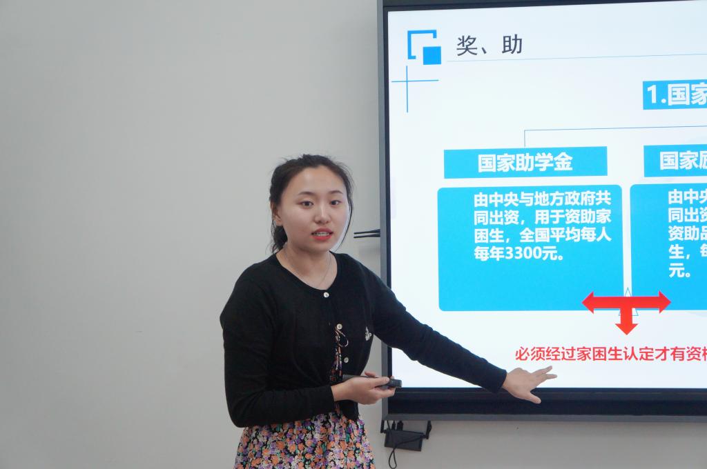 杨舒文以《身心同健,下班同行》为主题,从剖析心理健康、关注心理健康、识别心理健康以及干预心理健康四个方面入手,指出下班党员和下班团干要关注新生的心理健康,积极引导同学们愉快度过大学时光。随后,吴畏以《如何开好第一次班会》为主题,强调了新生开学的工作安排,指出要从思想上立高度、从行为上立规则、从文化上立情怀、从学风上立榜样、从生涯上立方向等几方面开展好第一次班会,引导新生做好未来规划,传递正能量。接着,段懿珊策从奖、助、贷、勤、免、补六个方面宣传了国家和学校的大学生资助政策,分析了申报条件和具体工作办法,并引导下班党员和团干及时关注新生的家庭经济状况,将感恩教育融入资助政策的宣传。最后,叶鑫以《做一名合格的培养联系人》为主题,要求下班党员和团干做信仰的传播者,积极引导新生向党组织靠拢,并提前为党员朋辈课堂做好准备。