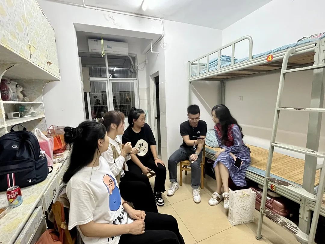 付蔷、夏洁瑾、刘晓函等班主任老师深入学生宿舍与新生谈心谈话,交流如何开启大学学业生涯,并从专业教师的角度提供学习方法指导和职业规划建议。2023级新生杨同学说:“学院老师、学长学姐在报到全程陪伴我们,还安排了中秋活动,让我们感受到温暖经管,情满中秋,异地求学的我也不觉孤单了,我对未来四年的大学生活充满期待。”