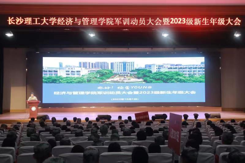 10月1日下午14:30,经济与管理学院在金盆岭校区五教大礼堂召开2023级新生军训动员大会。院党委副书记唐青、年级辅导员吴畏,全体教官及2023级全体新生参加大会,会议由年级辅导员段懿珊主持。