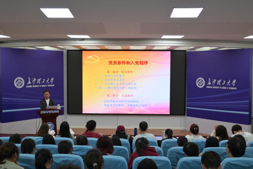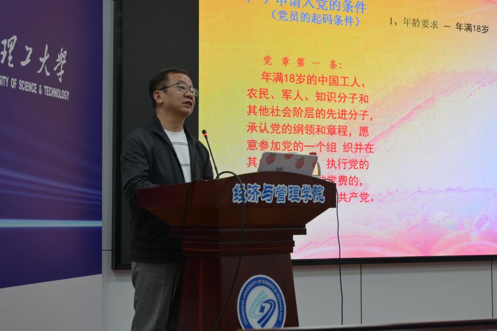 为做好党员入党积极分子的培训工作,切实提升入党积极分子的基础理论素养,10月23日晚19:00,经管学院在金盆岭校区12教200报告厅开展了第42期入党积极分子培训班第一堂理论课。本次党课由长沙理工大学原副校长黎正稳教授主讲,学院党建辅导员叶鑫老师主持。