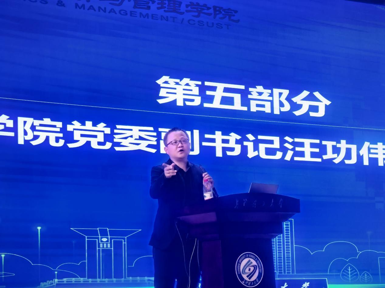 最后,汪功伟进行总结讲话。他叮嘱同学们要坚持不懈的学习,营造良好的学风学貌,追求卓越、提升能力,做社会主义合格建设者和可靠接班人,并表示学院会不遗余力的为同学们的成长成才铺路架桥。同时,他由“台下十年功”一段小品视频引入,结合亲身经历与同学们深入交流,鼓励同学们端正学习态度,扎实掌握专业知识和专业技能,以学习为中心,做一个眼里有光、心中有梦、脚下有力量的新时代青年。