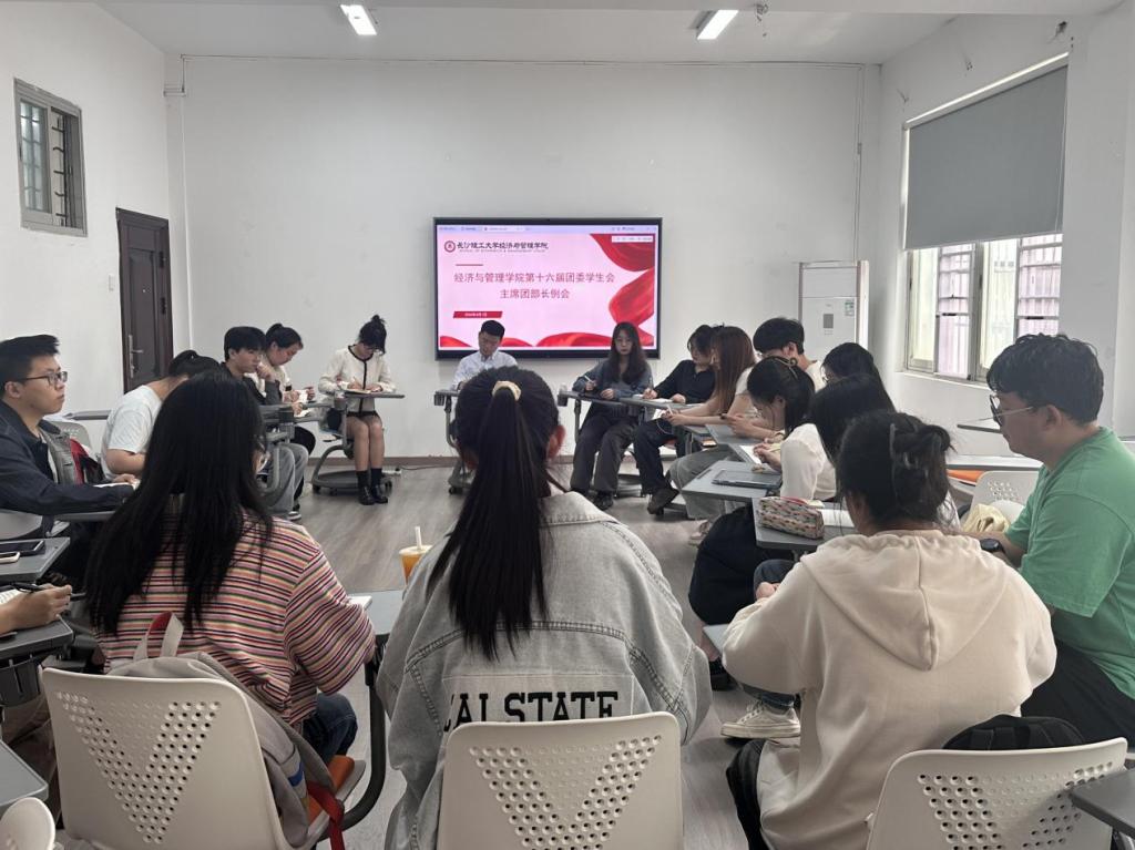 4月2日中午,为提升团学会工作水平,加强各部门之间沟通交流,经管学院第十六届团委学生会第四次主席团部长例会在经管大楼101召开。院团委书记何涛及院团学会主席团部长参加,会议由轮值主席陈悦妍主持。