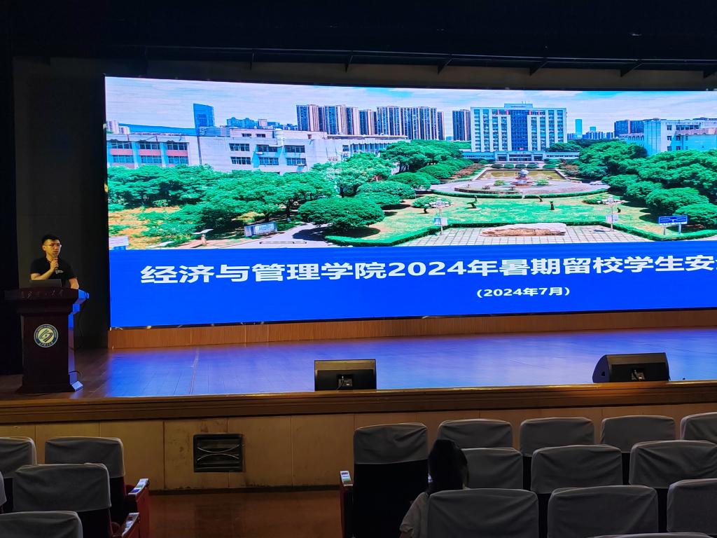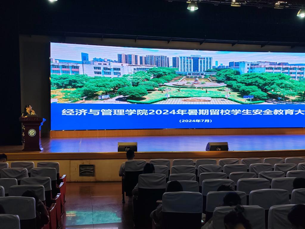 为维护暑假校园秩序,保障暑假留校学生的安全,增强学生自我管理与安全意识,7月10日下午15:30,经管学院于金盆岭校区五教大礼堂组织召开了2024年暑期留校学生安全教育专题会议,学院党委副书记汪功伟、研究生辅导员肖翠及全体暑期留校学生参会,会议由辅导员吴畏主持。