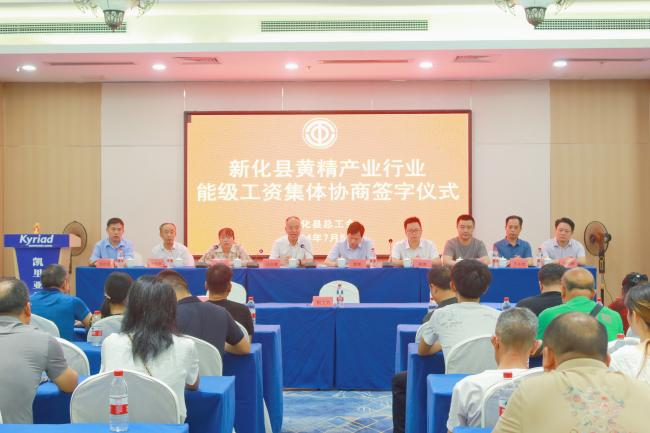 7月5日,新化县黄精产业行业能级工资集体协商签字仪式圆满举行。湖南省总工会权益保障部副部长蔡智、娄底市总工会副主席唐博、新化县总工会党组书记伍玉章、新化县黄精产业协会名誉会长李传奉、协会成员及职工代表50余人,以及长沙理工大学研究生暑期专业实践团(以下简称“实践团”)参加本次仪式。