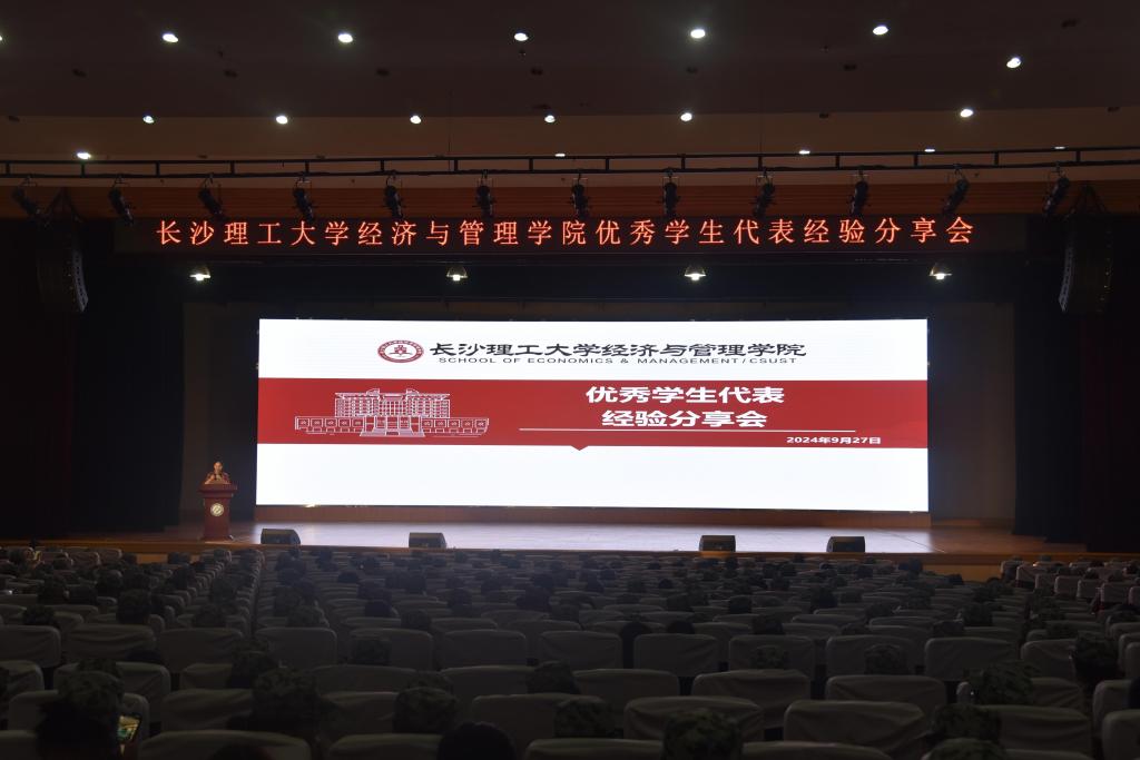 2024年9月27日晚,经管学院在五教大礼堂召开优秀学生代表经验分享会。学院24级全体学生参与本次会议,会议由院党委副书记汪功伟主持。