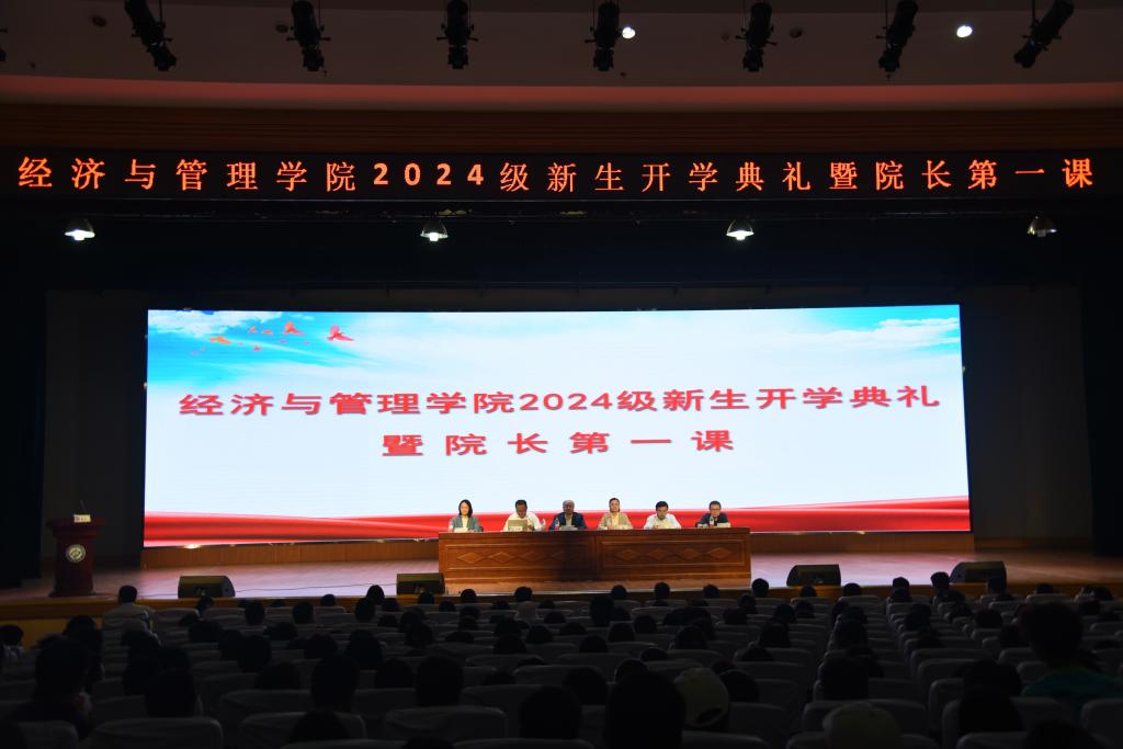 10月15日晚,经管学院于五教大礼堂召开2024级新生开学典礼暨院长第一课。学院全体院领导、新生班主任、辅导员以及2024级研究生、本科生出席,典礼仪式由学院党委副书记汪功伟主持。
